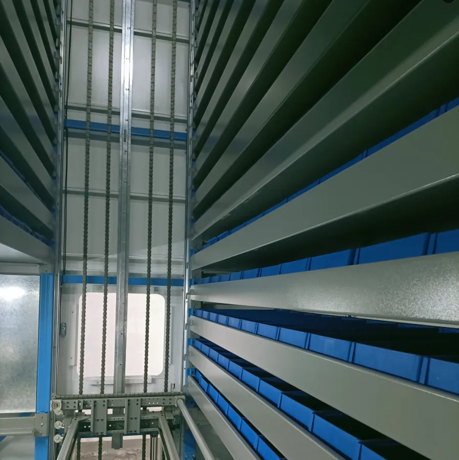 The main body of the vertical lift storage system is composed of four side panels. Its side panels are both the skeleton of the container and the beautiful outer wall, and at the same time, they are the support for the pallet on the inside. All the items are supported by these four side panels. The unique design can ensure that the container can achieve the maximum load capacity with the minimum unit weight.